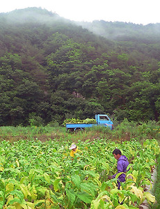 전체 글588 눈밭을 거닐다 꽤나 많은 눈이 왔다. 세상이 하얗게 변했고 나는 이 겨울의 대표적인 아름다움을 만끽하려 산책길에 나섰다. 어떤 이의 발자국도 없는 새하얀 길에 나의 흔적만이 더해저가는 것도 작은 즐거움이 있었다. 어느덧 아미산의 입구까지 걸어와 버렸고 나는 온 김에 제1부능선까지 올라가 본다. 산에가면 등산객들은 무슨 산악회다 하며 저렇게 표식을 남겨 둔다. 이들은 등산로를 알려주기도 하고 개인적으로 미관상 나쁘지도 않다고 생각한다. 하지만 우려되는 점은 과연 이들 표식들이 땅에 떨어졌을때 환경을 오염시키는 쓰레기가 되지 않을까 하는 점이다. 친환경 소재로 제작되었으면 그나마 나을까 싶지만 과연 하는 생각이 든다. 2010. 2. 13. 일 년 만의 첫 눈 사흘간 내리던 비가 마침내 눈으로 바뀌어 다시 이틀동안 더 내렸다. 아니 지금도 내리고 있다. 사실 어제 봤던 눈이 나에게는 첫 눈이었다. 지난 겨울 이후로 1년만에 보는 첫 눈인 것이다. 눈은 많이 내렸고 나는 온 세상이 하얗게 변하길 기대했지만 그동안 내린 비로 인해 금새 녹아 나의 바람은 이루어 지지 않았다. + 비닐하우스 내에 미나리가 자라고 있었다. 곧 식탁에 오르길 기대해 본다. 2010. 2. 12. 사흘 동안 비가 내렸다 사흘동안 비가 내렸다. 덕분에 겨울임에도 포근한 기온이 계속되고 있다. 위 두 문장의 조합은 내게 사흘동안 집안에 틀어박혀 있게 만들었다. 그러나 오늘 아침은 오랫만에 잠시 바람을 쐬러 나갔다 온다. 사방을 둘러싼 산에는 안개가 겹겹이었고 대부분의 앙상한 나무가지에는 물방울 열매가 고여 있었다. 따뜻했던 기온에 땅은 녹아 비를 한껏 받아들이고 있었고 바람도 없어 오직 부슬비 소리만이 적막한 대지를 감돌 뿐이다. 이대로 봄이 왔으면 좋겠다. 2010. 2. 10. Australia :: 9개월 호주여행 일기 20090520 - 시작되지 않은 여행 정오 무렵. 시티 라이브러리로 가는 길. 태풍을 방불케 하는 비바람이 브리즈번 전역을 휘젓고 있었다. 점심식사를 위해 나온 회사원들은 거리에서 연신 비명을 질러대며 비바람을 피하고 있었고 빌딩 경비들은 건물 안으로 들어오는 비를 막기 위해 자동문을 통제하고 있었다. 나는 그들 틈에 섞여 도서관 건물 안으로 들어섰고 NBA를 시청중인 Simon형을 만났다. 어느덧 3주가 흘렀다. 몇 장의 사진을 찍고 거리에서 노래도 불렀으며 몇몇의 인연도 만났다. 하지만 무엇때문일까. 아직 아무것도 채워지지 않고 있었다. 새로운 것에의 갈망도 텅 빈 가슴도 심지어는 통장의 잔고도. 나는 무엇을 위해 시속 900킬로의 속도로 10시간 동안이나 날아온 것인가. 해답은 가까운 곳에 있었다.. 2010. 2. 10. 꽃 이름 알기 산당화 금낭화 돌복숭아 꽃 꽃잔디 수유나무꽃 나팔꽃 살구꽃 흰 고마리 작약꽃 조팝나무 풀협죽도 제비꽃 광대나물 도라지꽃 참나리 개쑥갓 꽃다지 생강나무꽃 매화 민들레 뱀딸기꽃 애기똥풀 양지꽃 접시꽃 2010. 2. 10. 2007년 7월 18일 한낯에 태양이 따가울 때는 담배를 딸 수가 없다. 그래서 농부는 새벽 5시면 일어나 담배를 따러 나간다. 아침이슬이 많기 때문에 우의를 입은채 일을 해야 한다. 이렇게 시작한 아침일은 오전 9시에서 10시 사이까지 한다. 그리고 그때야 아침을 먹는다. 2010. 2. 9. 2007년 3월 9일 오랜만에 여유를 찾고 농사의 시작을 보았다. 일월말에는 비늴하우스를 만들었고 그리고 오늘. 비교적 바람이 덜부는 날을 택해 등겨를 태웠다. 이 태운 등겨는 나중에 흙과 섞어 포터(아래사진의 어린 담배를 옮겨 심어서 나중에 밭에 심을 때 쉽게 할 수 있게 해 놓은 것)를 만들 때 쓴다. 하루일과를 마치고 지금 이 글을 적다 보니 이년전 등겨를 태운 날도 바로 3월 9일이었다. 우연의 일치다. 올해는 포터로 옮기는 과정이 늦어져 담배가 무척 크게 자랐다. 비늴하우스에는 봄 배추가 딱 먹기좋을 만큼 자라 있었고 고추싹도 나 있었다. 2010. 2. 9. 2005년 4월 18일 이제 담배를 밭에다 다 옮겨 심었다. 모든 밭에 다 심으려면 꼬박 4일이 걸리는데, 8일날부터 시작한 일이 오늘에서야 끝났다. 2010. 2. 9. 2005년 4월 02일 하우스에 있는 담배를 밭에다 옴겨심기위해 준비중이다. 비료를 뿌리고 두둑을 짓는다. 포터에 옮겨 놓았던 연초가 이렇게나 많이 자랐다. 곧 옮겨심을 예정이다.. 2010. 2. 9. 이전 1 ··· 59 60 61 62 63 64 65 66 다음